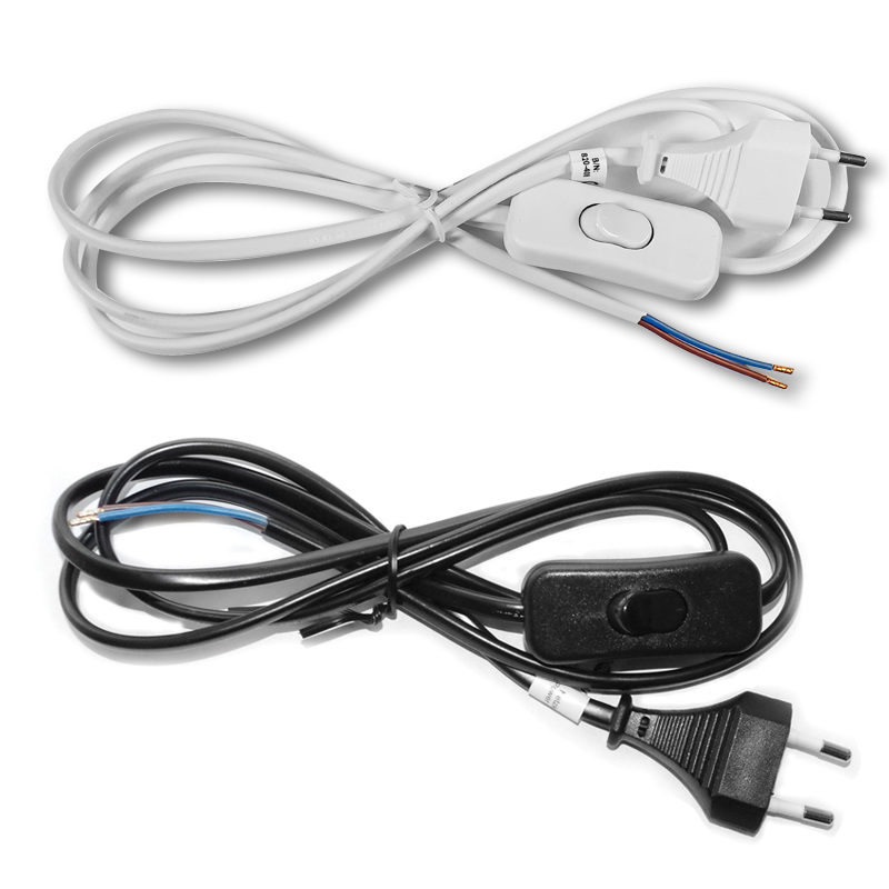Maitinimo kabelis su kištuku ir jungikliu juoda